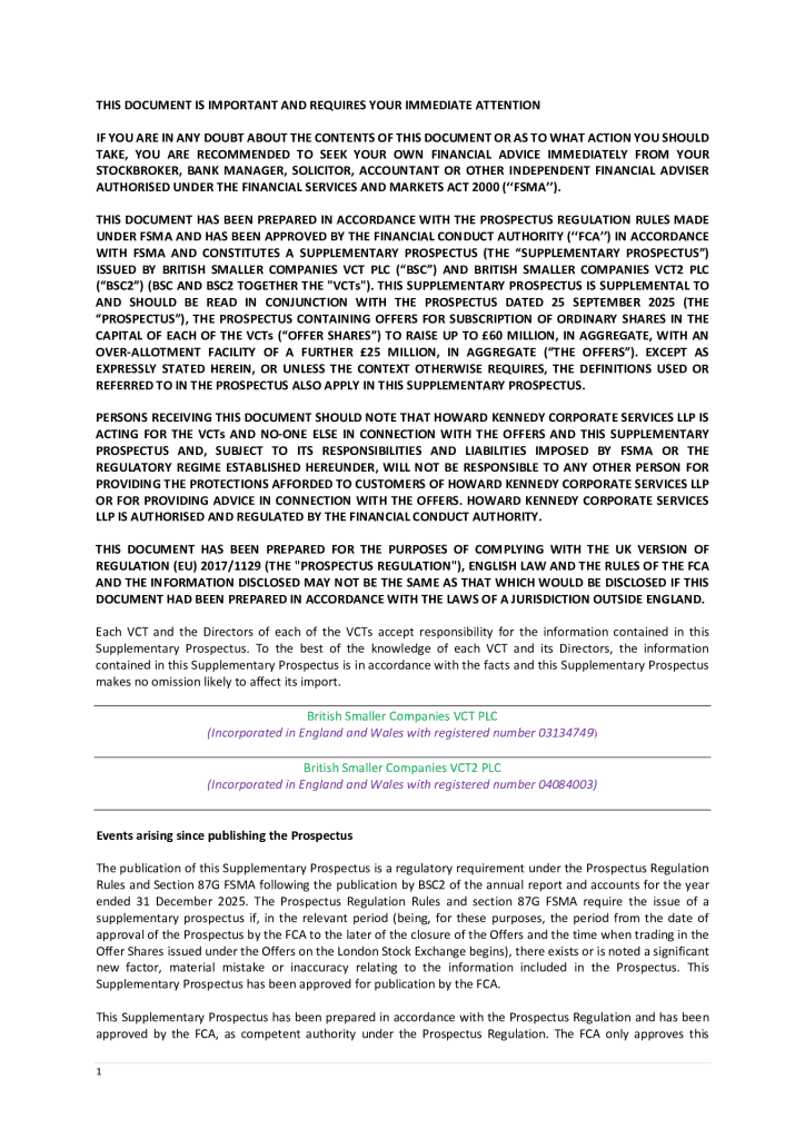 British Smaller Companies VCT plc and British Smaller Companies VCT2 plc (together the BSC VCTs) have now received applications to the maximum level permitted and the Offers are now closed to new applications.